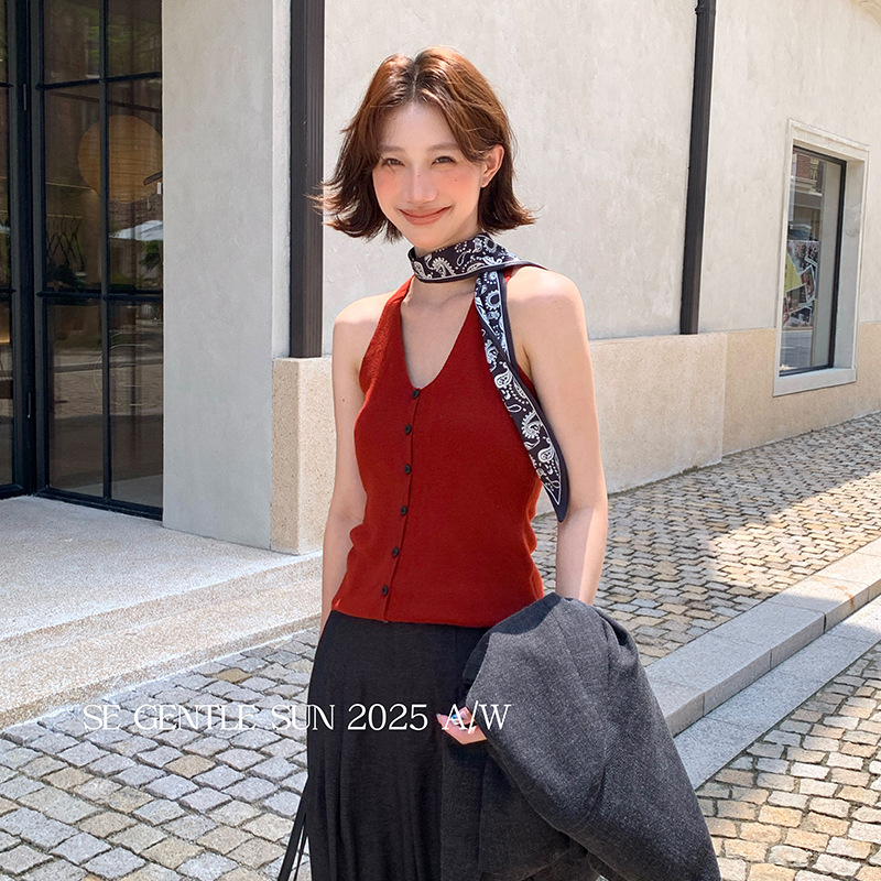 【特价不退换】秀熙熙秋季V领修身羊毛打底针织衫背心小衫女25428