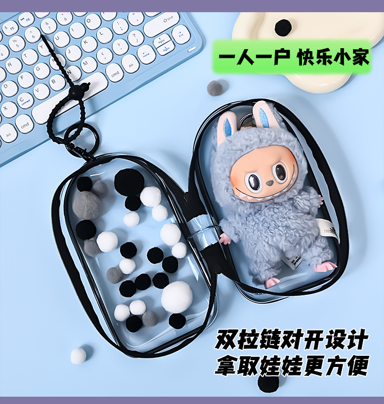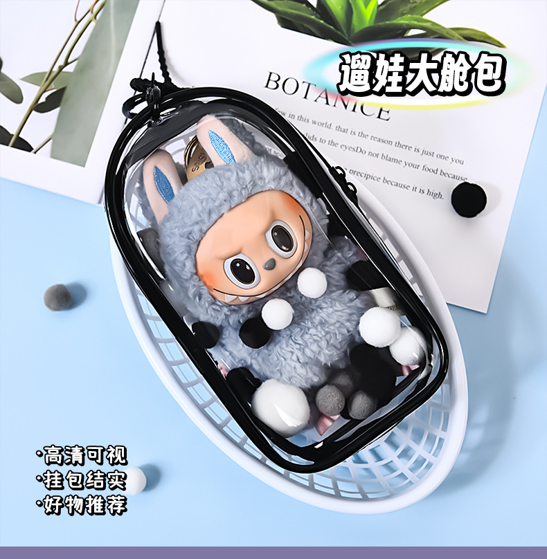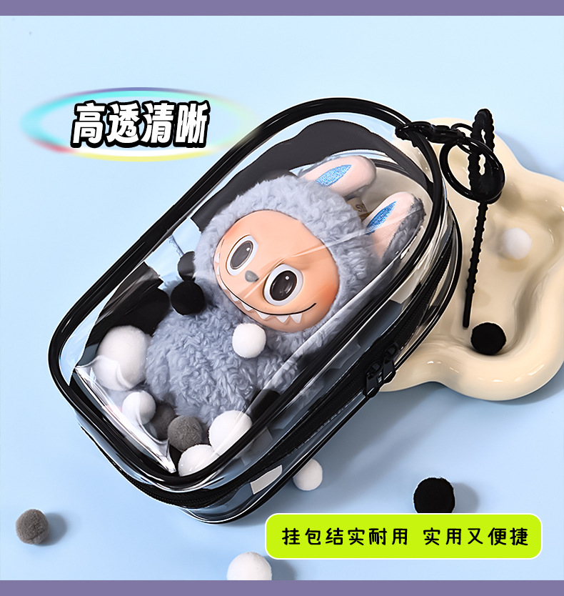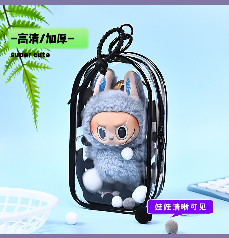 15cm棉花娃娃收纳包pvc加厚高透明娃包外出展示防尘挂袋Q圆遛娃包