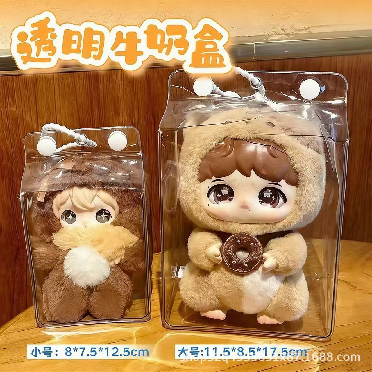 透明牛奶盒遛娃包pvc痛包盲盒娃娃防尘娃包外出收纳包透展示娃包