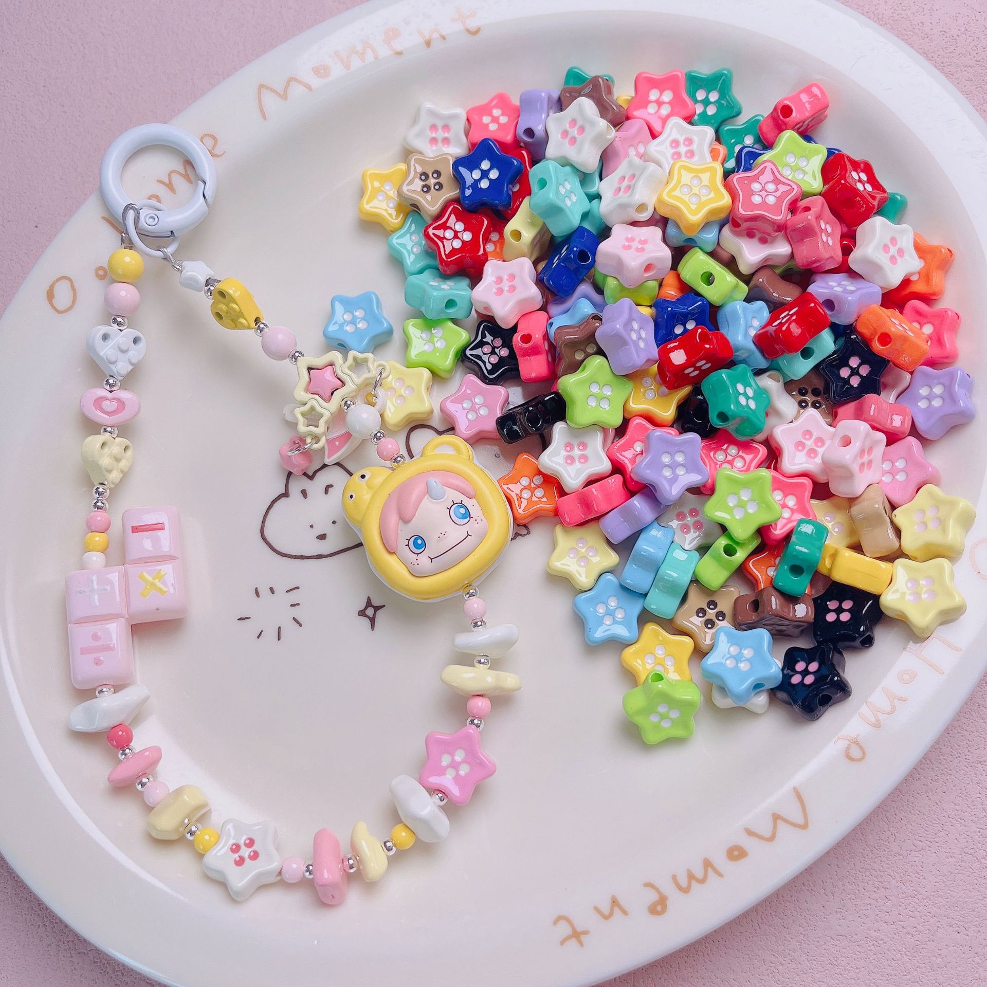 高品UV光沢マカロン実色五角星散珠diy携帯チェーンキーホルダーアクセサリー材料