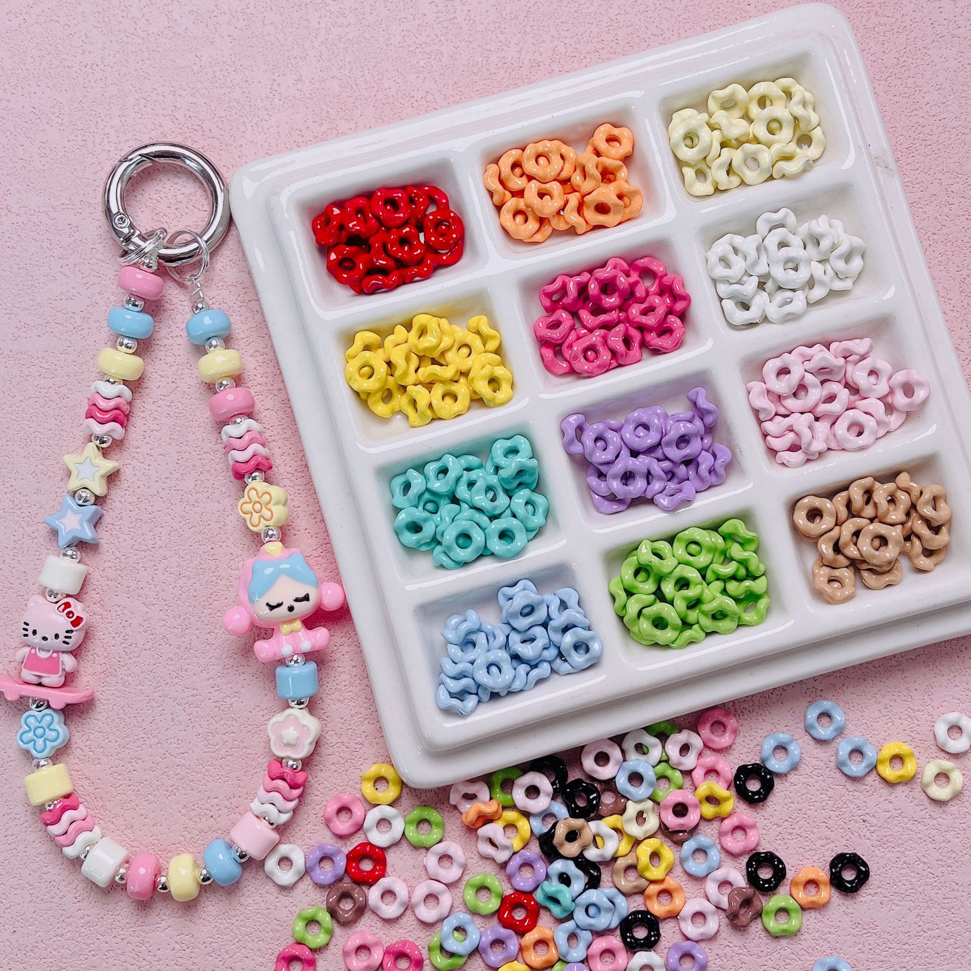 ペイント合金かわいいドーナツビーズdiy携帯チェーンキーホルダービーズ材料アクセサリー