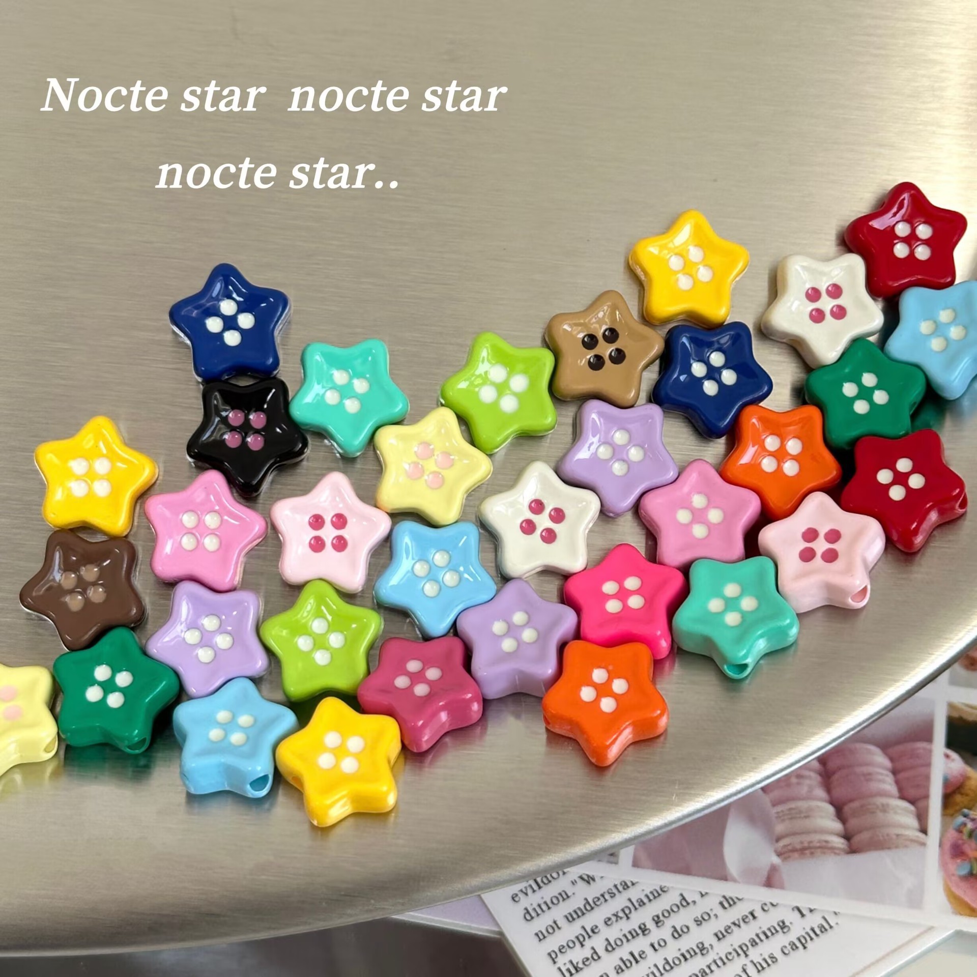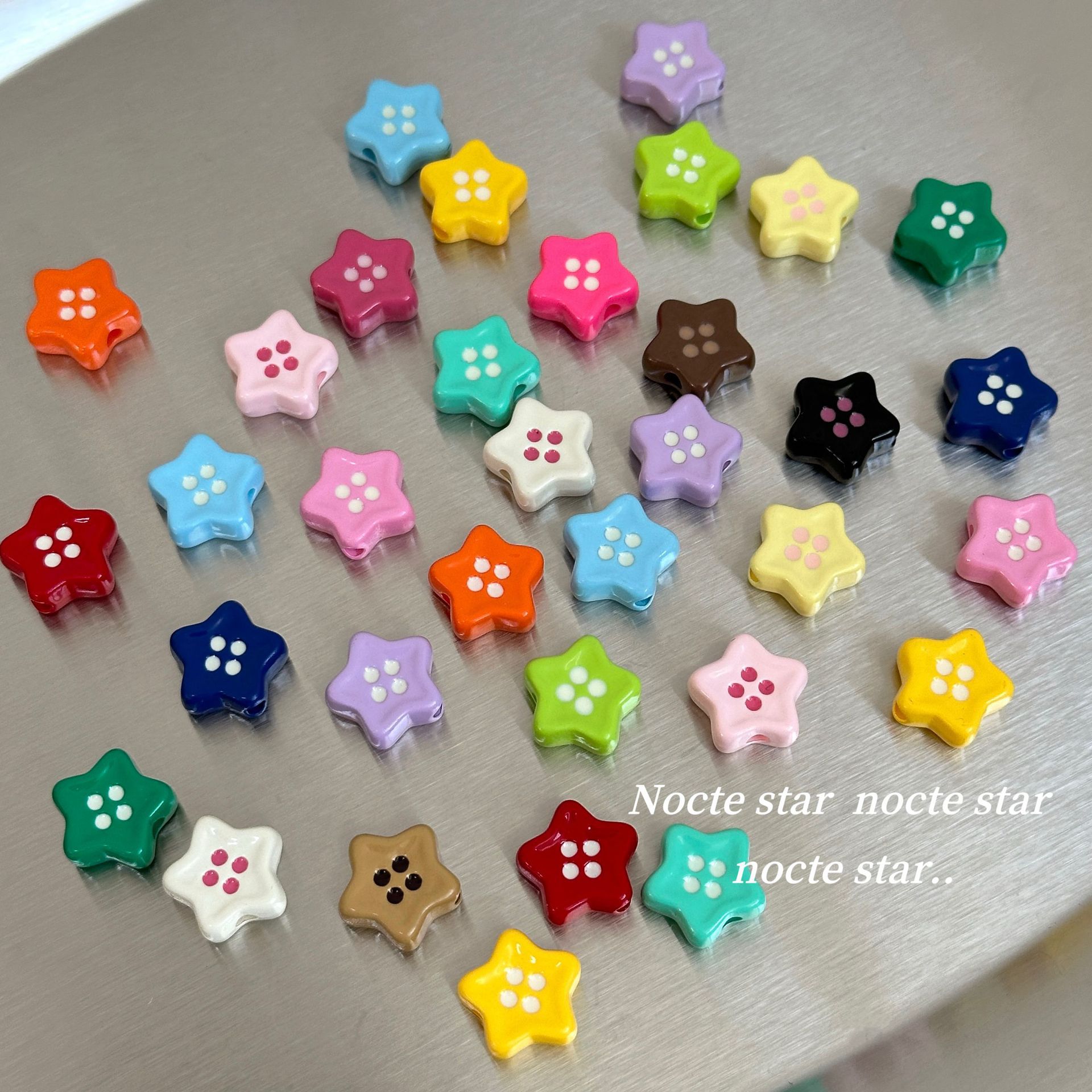 ペイントスターボタン穴あきビーズドットオイル五芒星アクリル diy 携帯電話チェーンベビー服ジュエリーアクセサリー