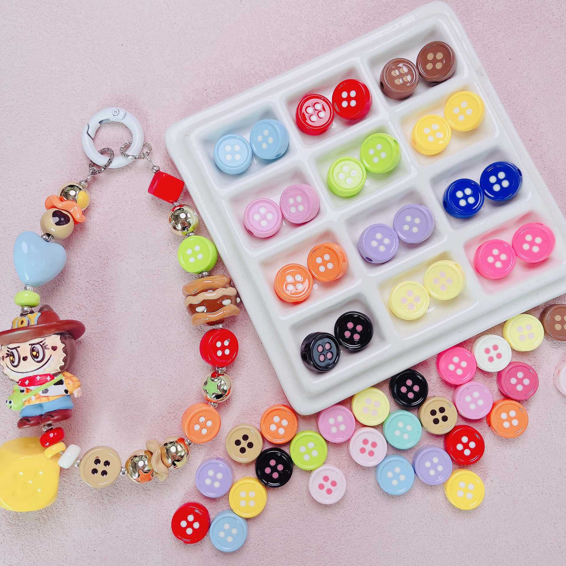 かわいいドーパミンラウンドボタンパターンスルーホールアクリルビーズ手作り diy 携帯電話チェーンジュエリーアクセサリー