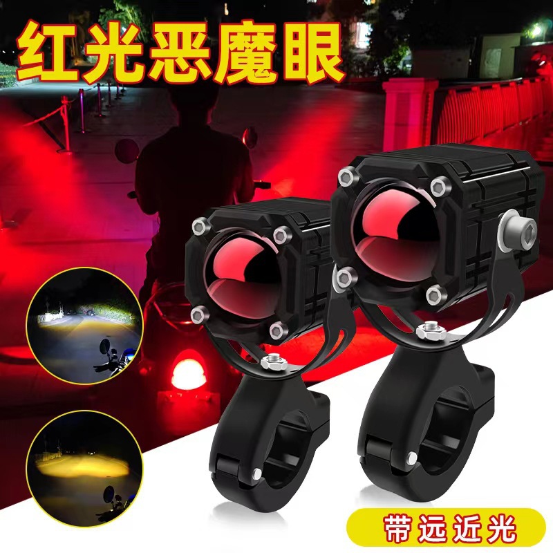 オートバイスポットライト LED 2 色小型鋼砲超高輝度防水レッドデビルアイレンズフラッシュライト修正クロスボーダー