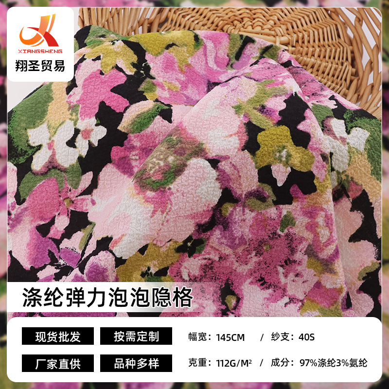 ポリエステル弾性バブルジャカード生地新しいファストファッション衣類男の子と女の子のスーツ生地卸売