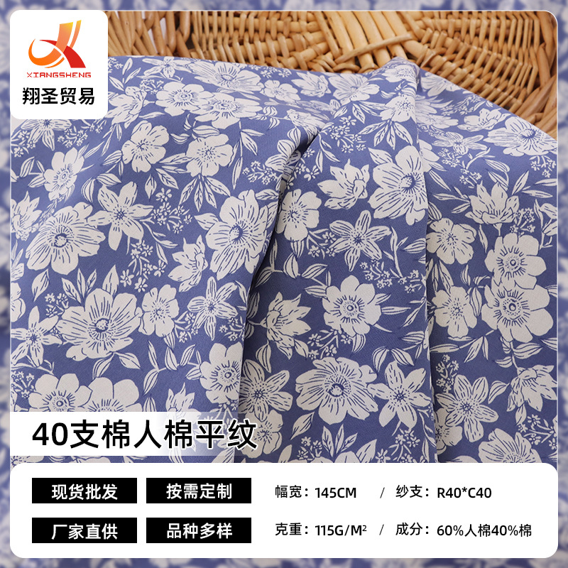 40 カウント綿レーヨン無地綿レーヨンプリント弾性織物生地春と夏の女性のシャツ生地卸売