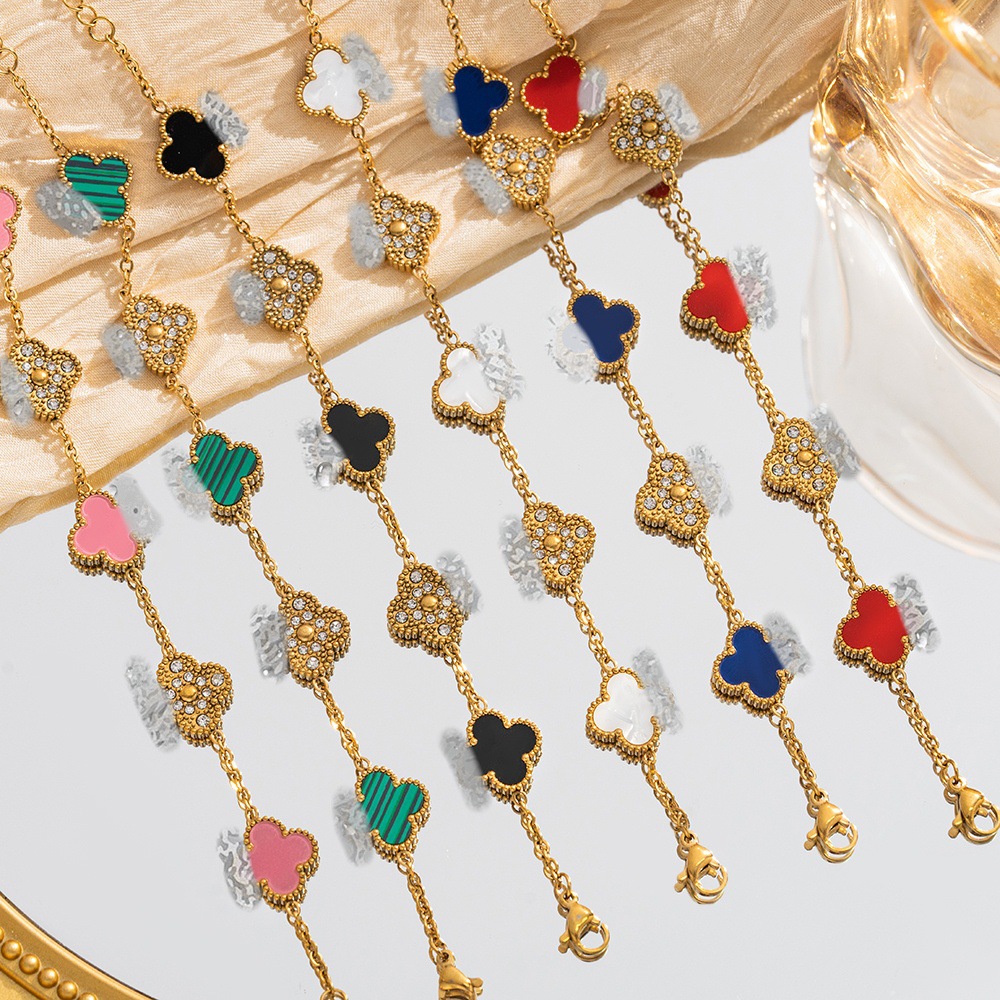 钛钢五花幸运草五叶草手链女式轻奢高级感18k不掉色不锈钢手饰品
