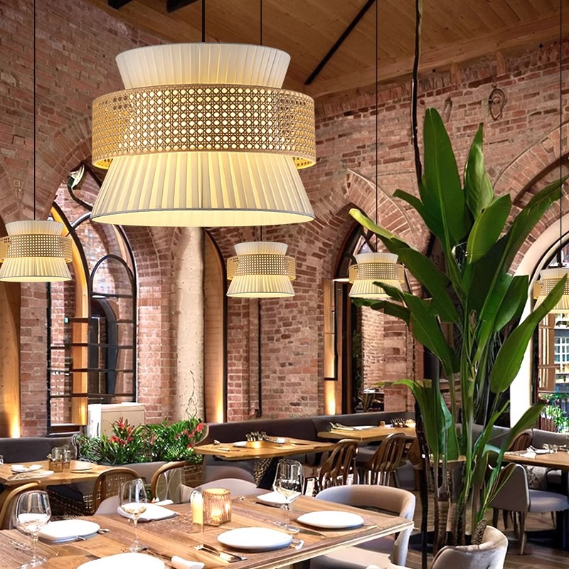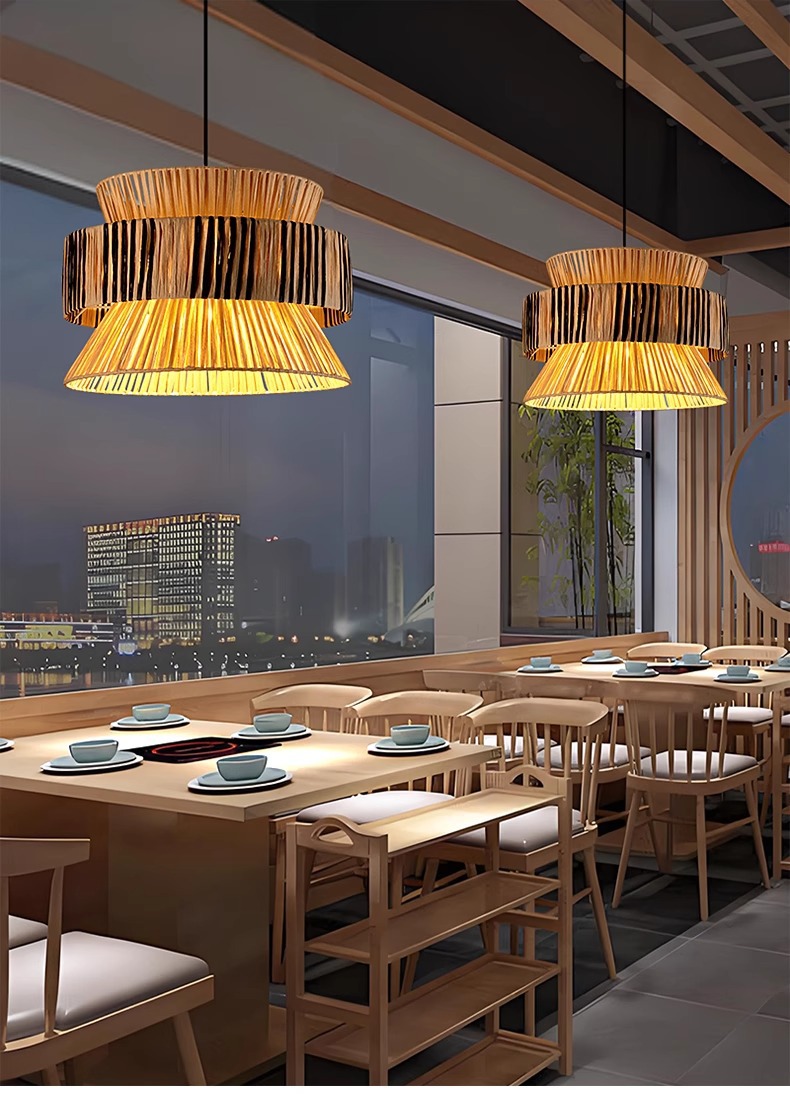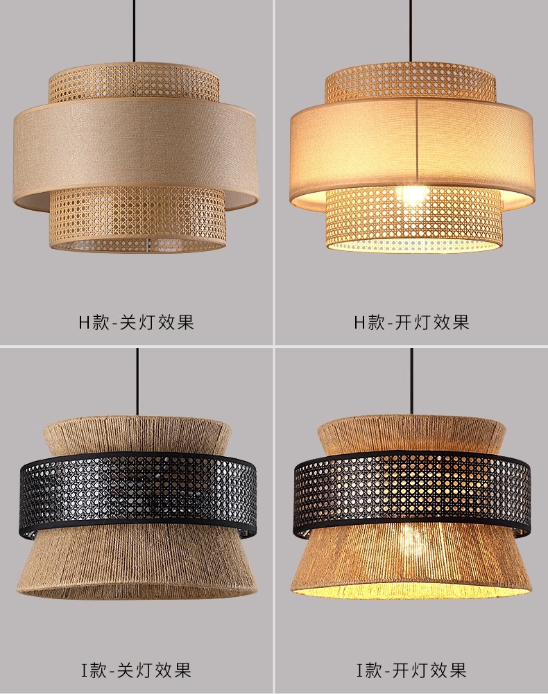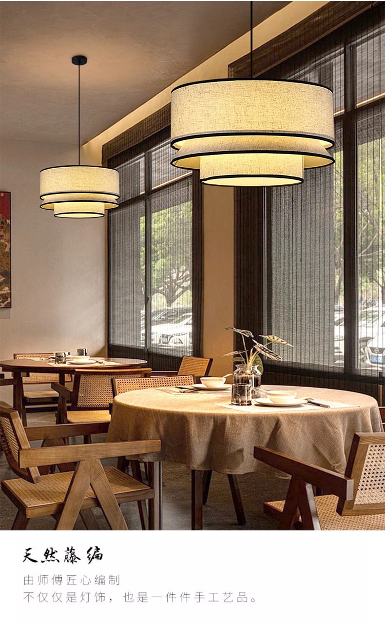 日式侘寂风餐厅咖啡店茶室吊灯复古原木风民宿东南亚藤编氛围吊灯