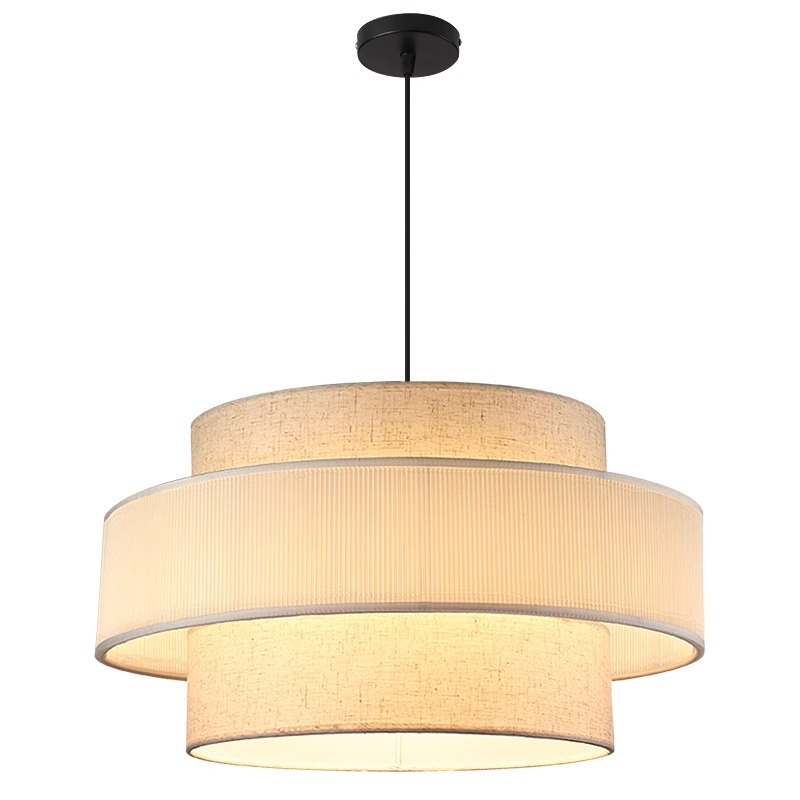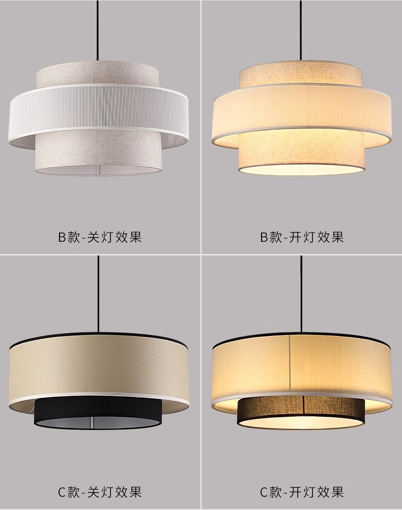現代寝室シャンデリア客間食堂ランプシンプル田舎円形創意二重亜麻布芸照明器具