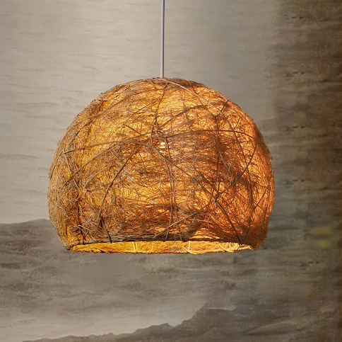 手作りの籐製茶室吊り下げランプ 麻糸籐製中国風照明器具 クリエイティブランプ 鍋料理店禅レストラン吊り下げランプ