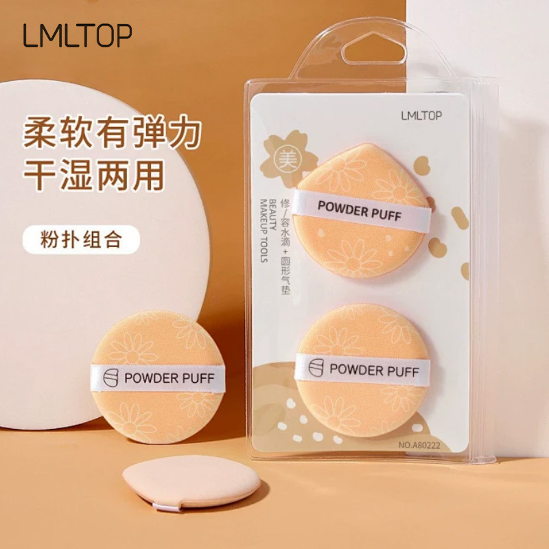 LMLTOP BB霜粉底液气垫粉扑2枚装 干湿两用水滴圆形化妆扑 A80222