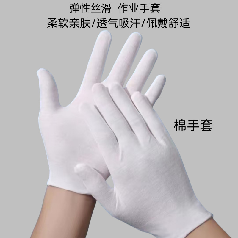 纯棉手套劳保加厚汗布白色实验室作业文玩棉薄手套白手套礼仪盘珠