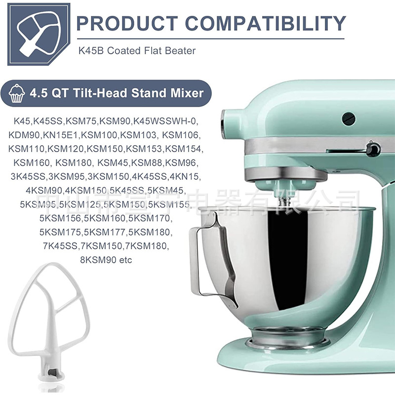 兼容性:这款平板搅拌器专为 Kitchenaid 4.5-5 夸脱倾斜头立式搅拌机碗设计,非常适合 K45、K45SS、KSM75、KSM90、KSM95、KSM100、KSM103、KSM110、KSM120、KSM150、KSM15、KSM15、KSM15、KSM15、KSM15、KSM15、KSM15、KSM15、KSM15、KSM115、KSM15、KSM15、K52,52,KN15E1X,为您的烹饪技能提供便利。