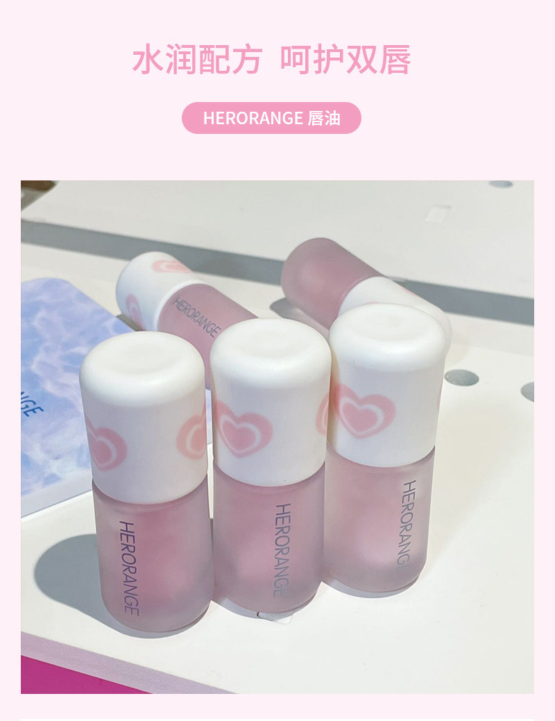 HERORANGE~リップリップグロス、透明感のあるリップグロス、重ね塗りで柔らかくふっくら唇、リップラインを薄く、女性用透明リップオイル