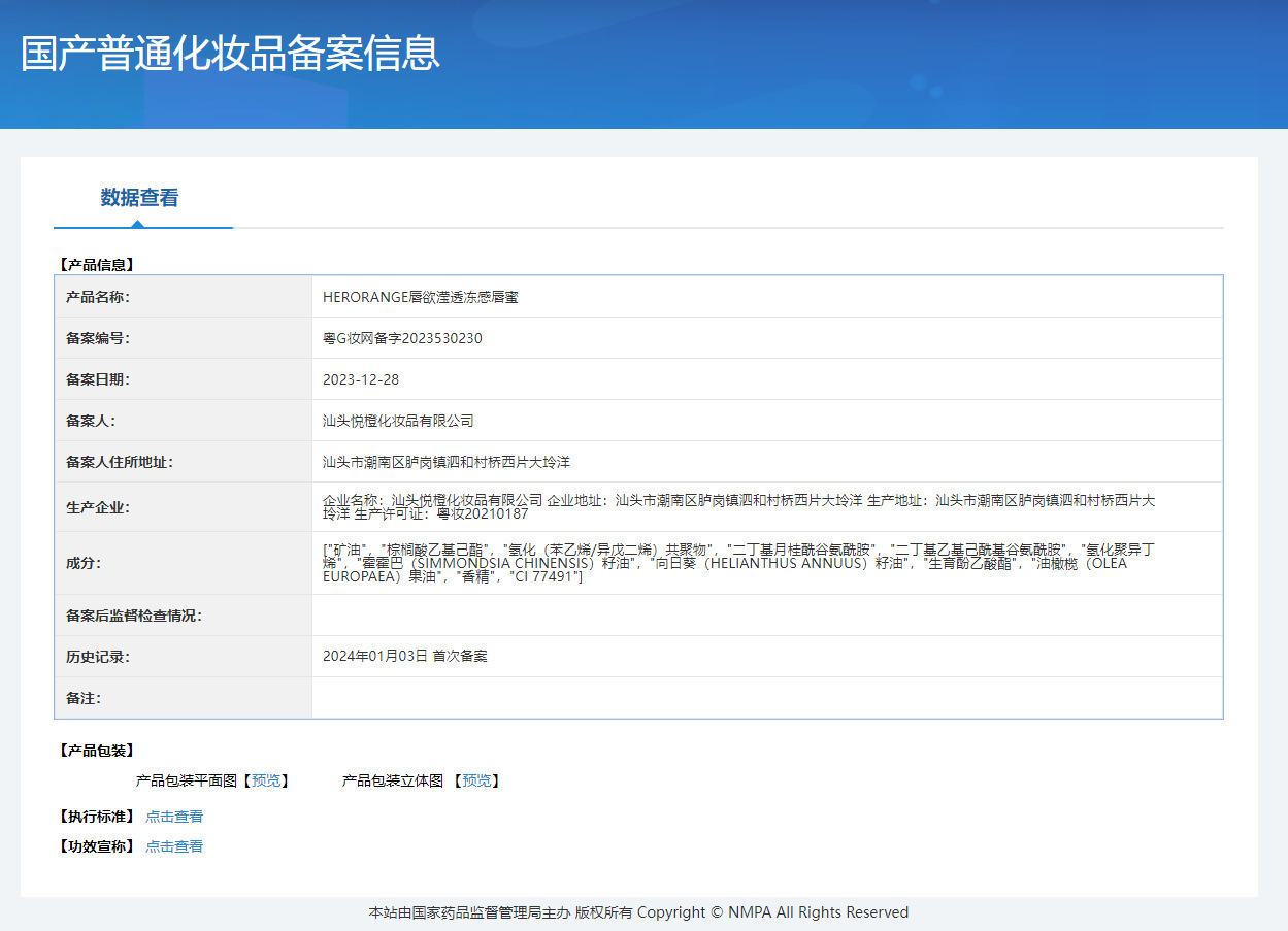 非特殊化粧品登録証番号 広東省Gメイクアップネットワーク準備番号 2023530230