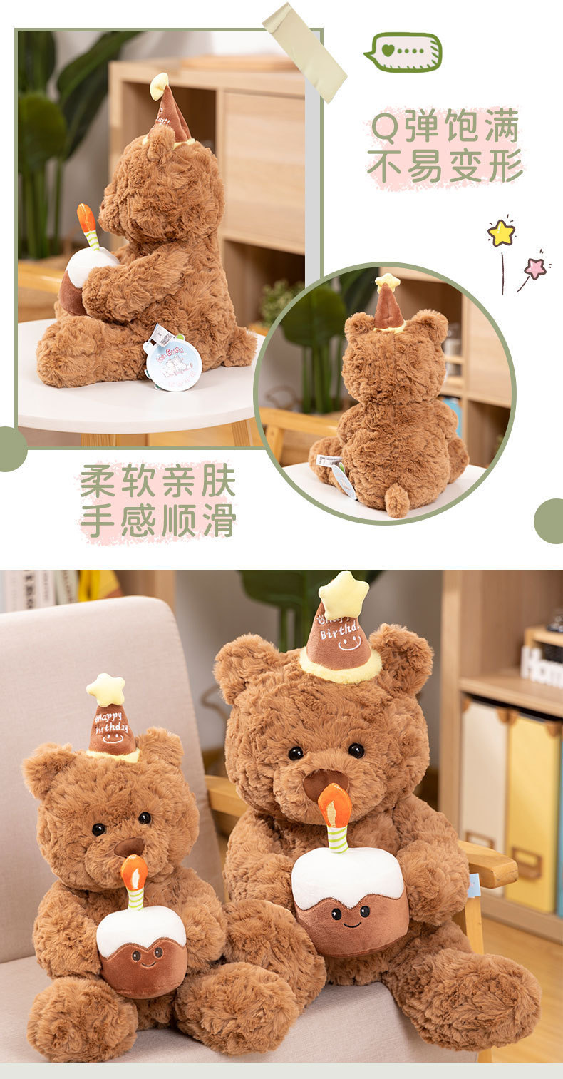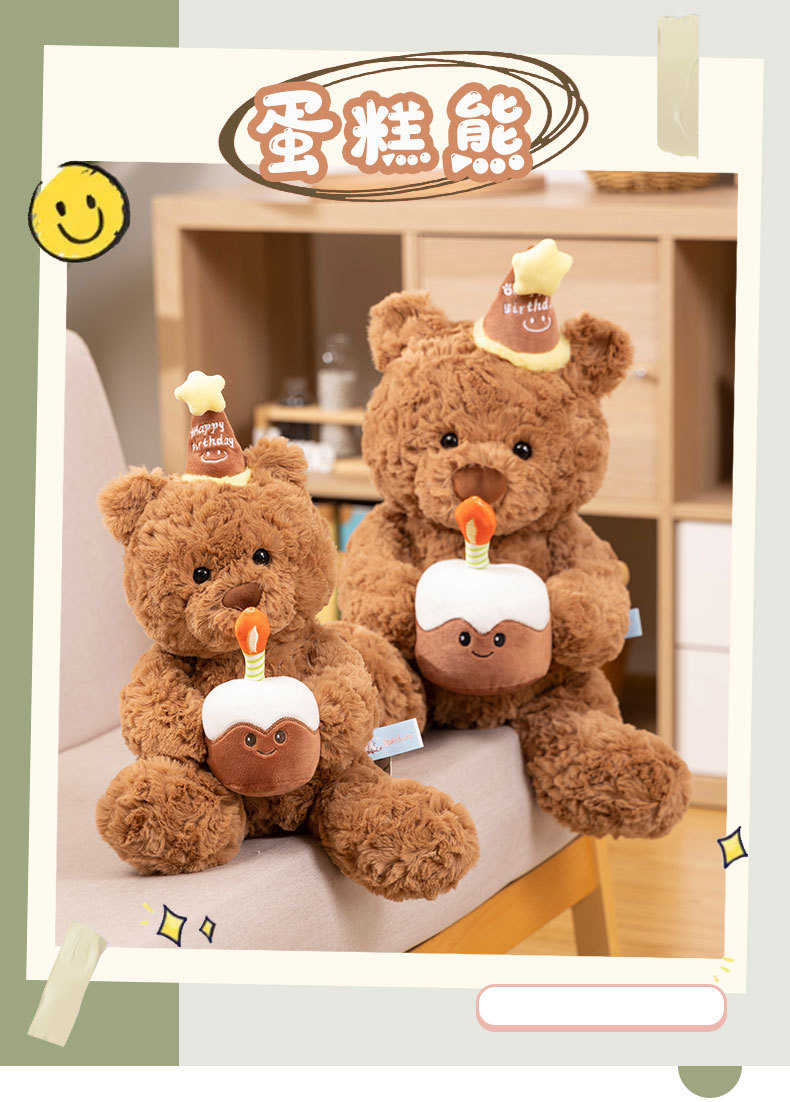 可爱蛋糕熊玩偶生日帽小熊毛绒玩具公仔儿童可爱抱抱熊送女生礼物