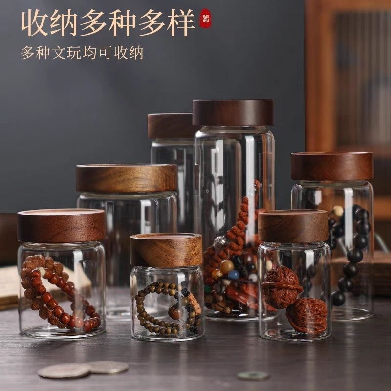 文玩密封罐玻璃瓶佛珠核桃手串陈皮手办沉香檀香展示收纳罐养珠罐