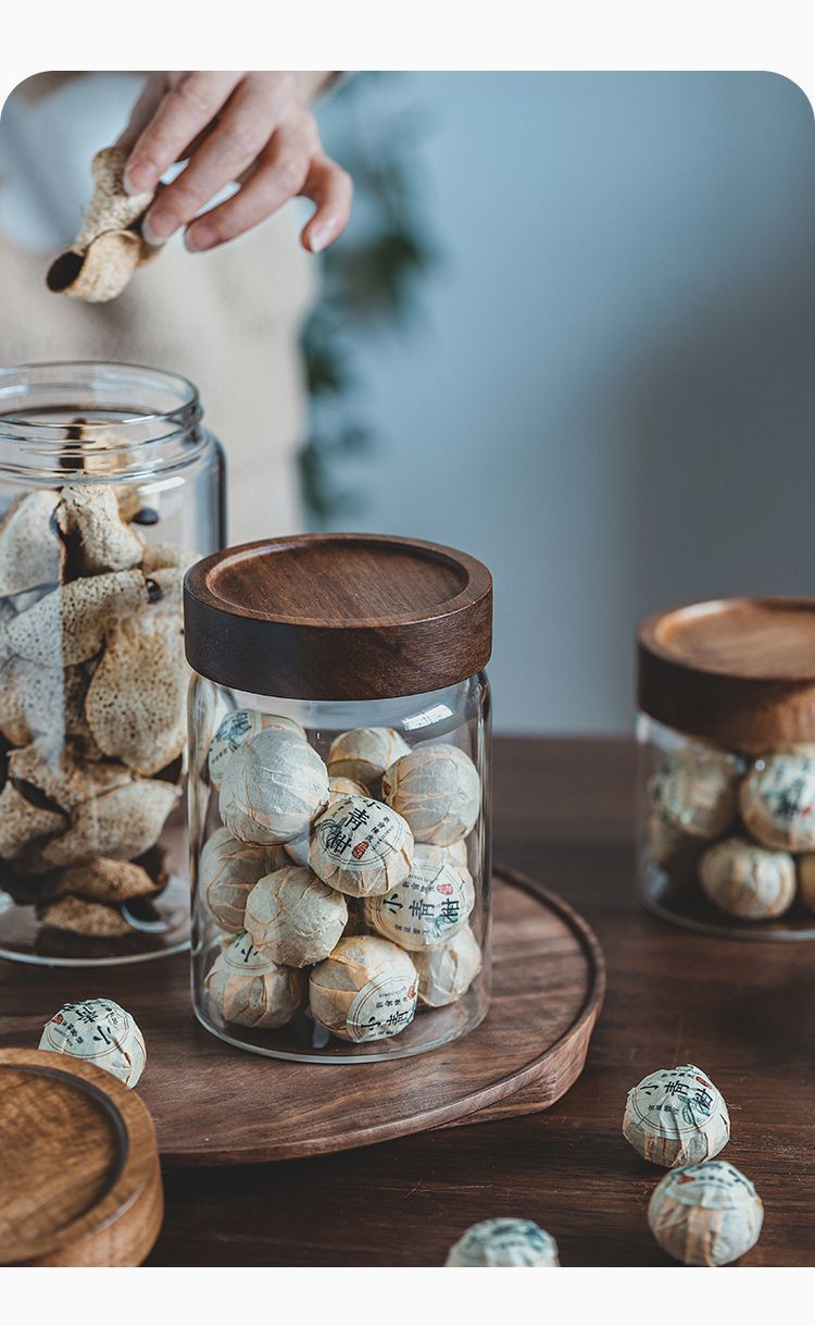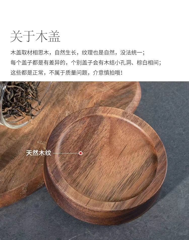 批发相思木盖储物罐陈皮罐家用圆形透明高鹏硅玻璃密封罐茶叶罐子