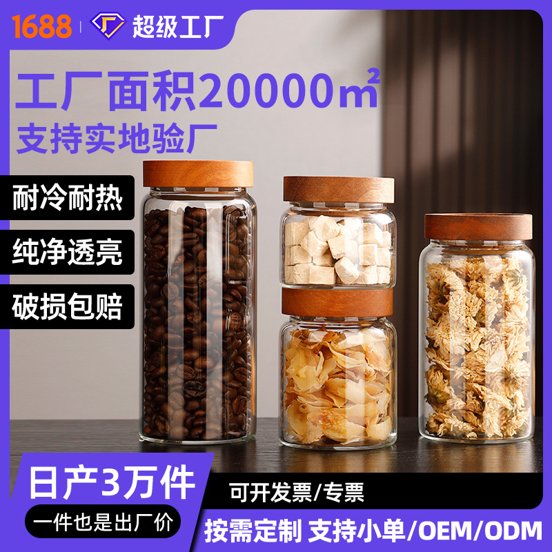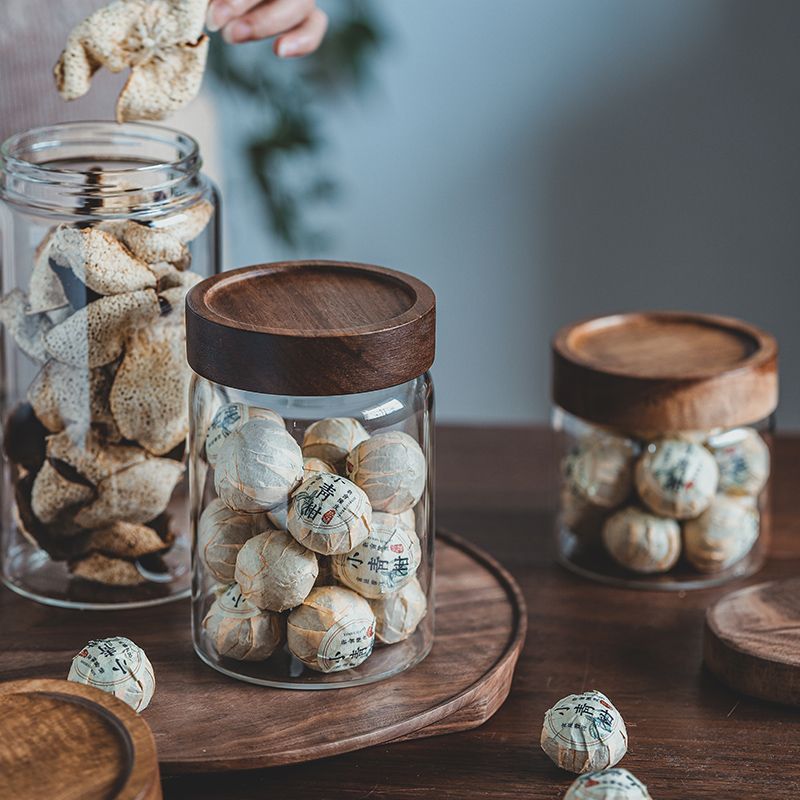 相思木盖高硼硅玻璃密封储物罐厨房五谷杂粮防潮收纳罐透明茶叶罐