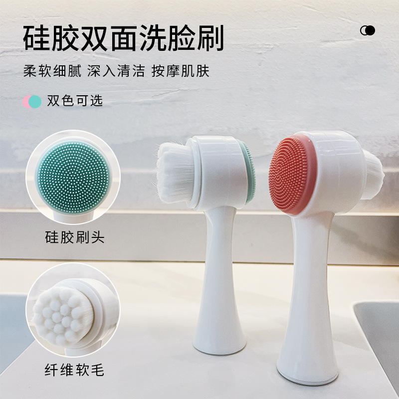 シリコーン両面洗顔ブラシ柔らかく繊細なディープクレンジングマッサージ肌シリコーンブラシヘッド柔らかく糸くずの出ない