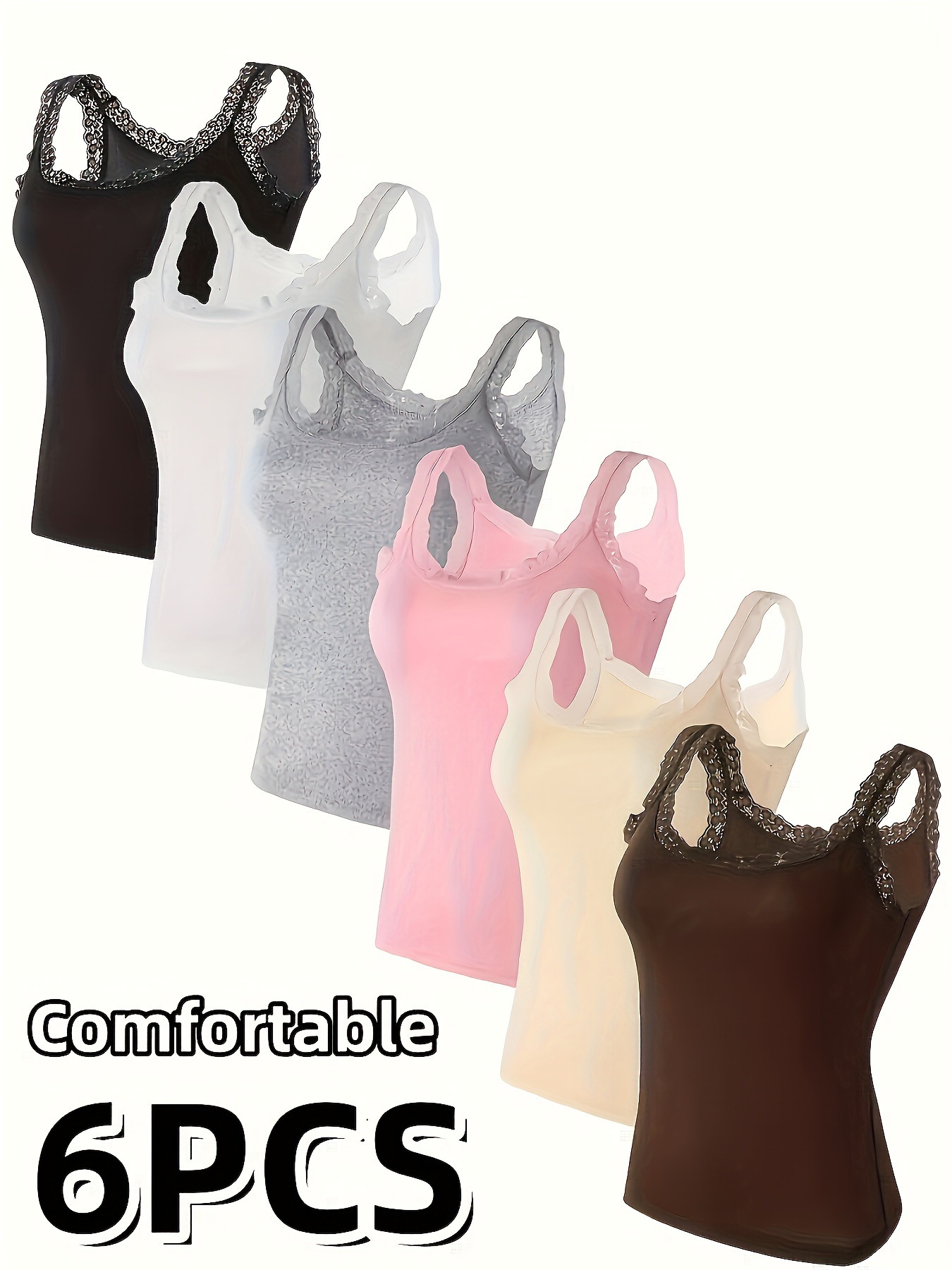 2025年新作ヨーロッパとアメリカのラウンドネックレースベスト6枚セット、春の新作