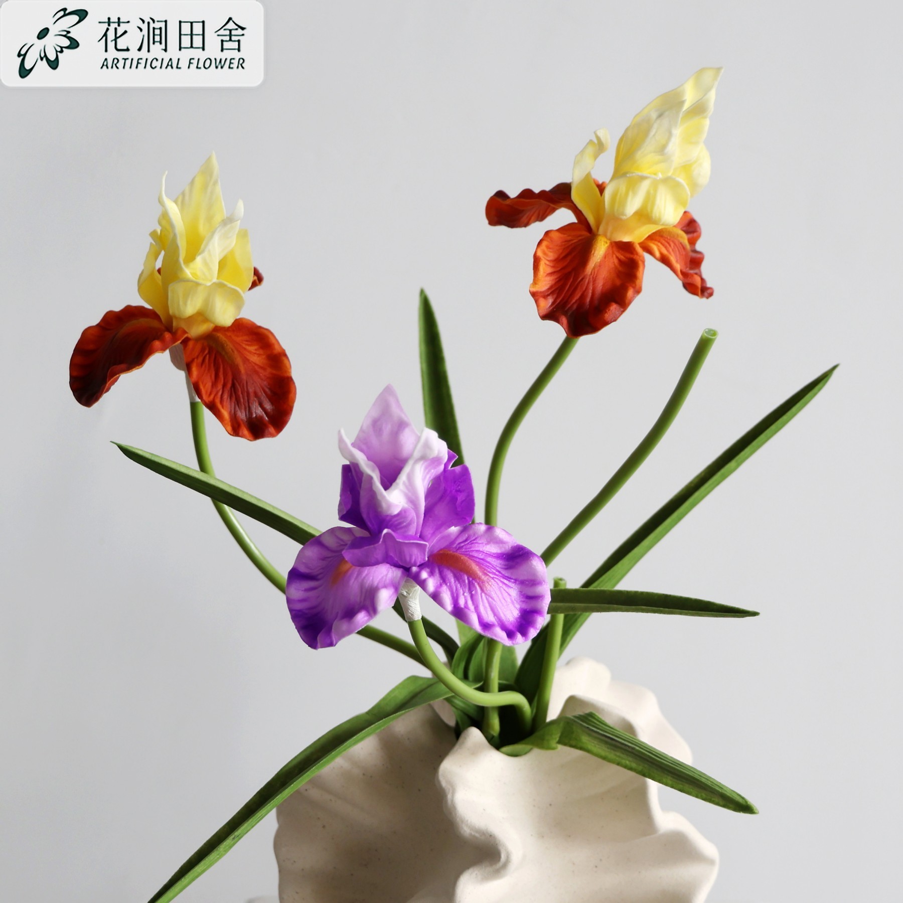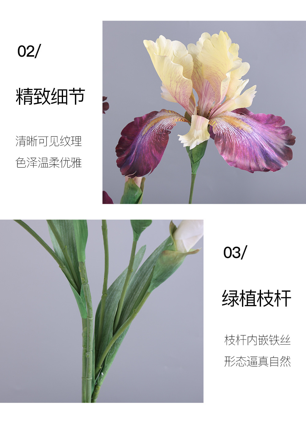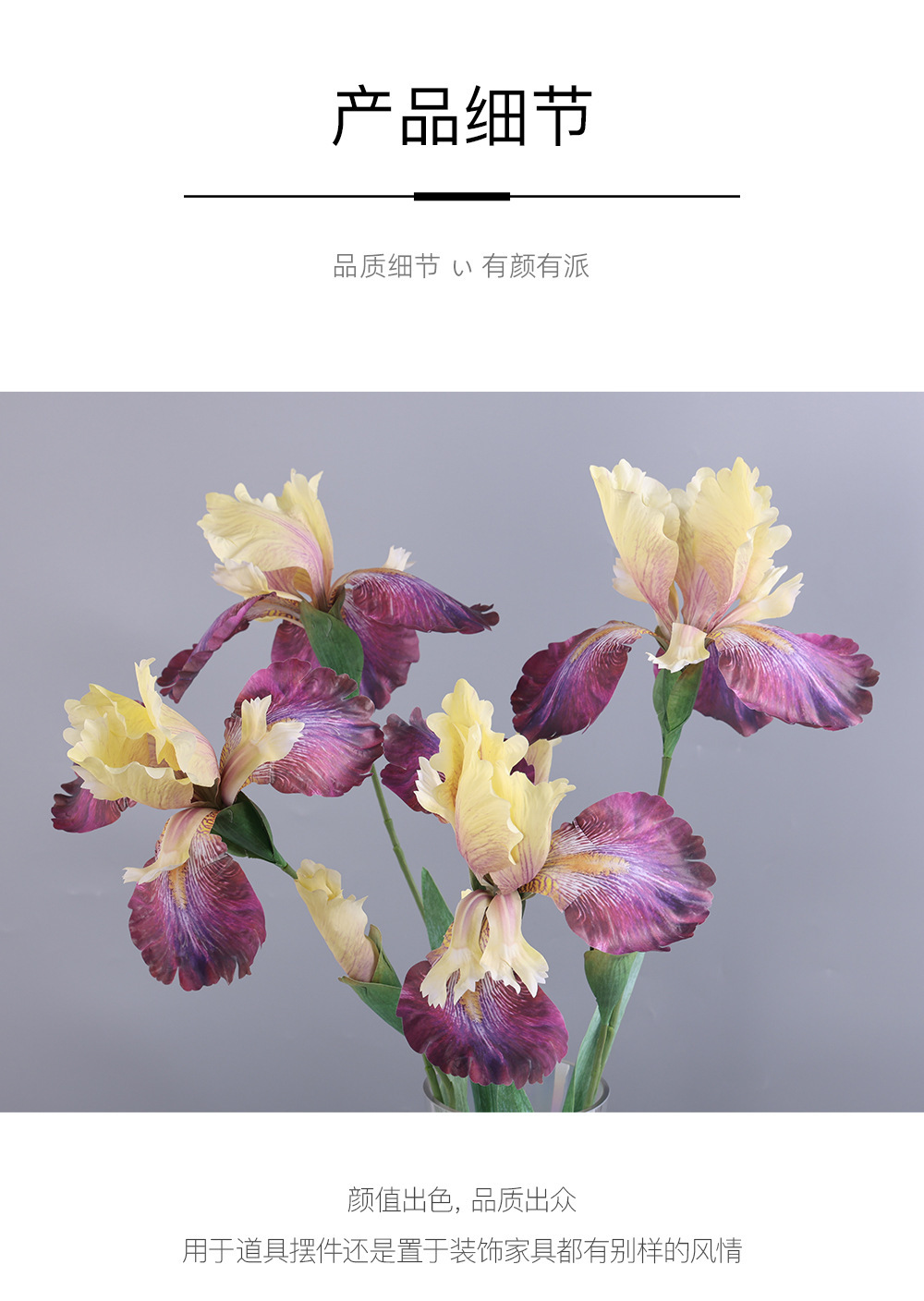 仿真花油画鸢尾花爱丽丝PU假花 婚庆仿真花花艺家居配材插花假花
