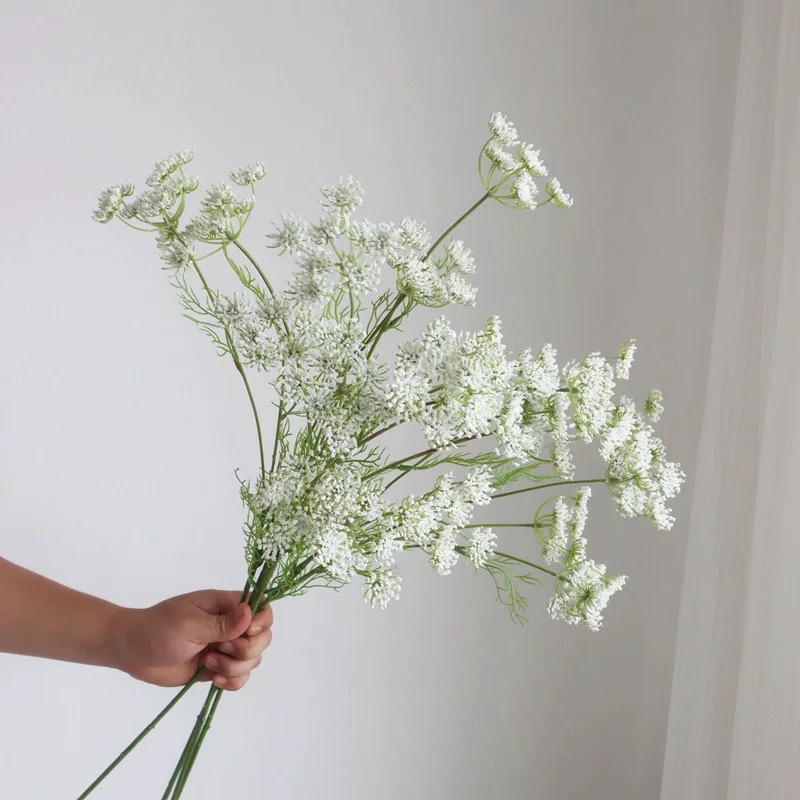 仿真花水竹草5头蕾丝花仿真绿植英 婚庆摄影道具仿真花束配叶摆件