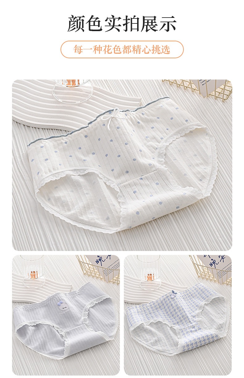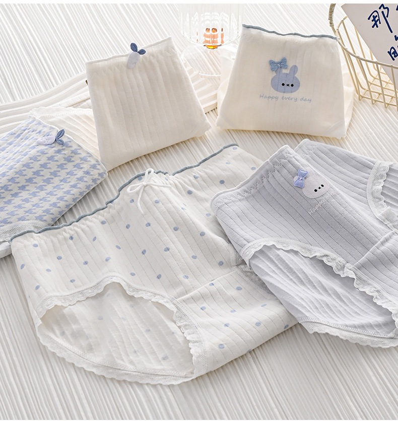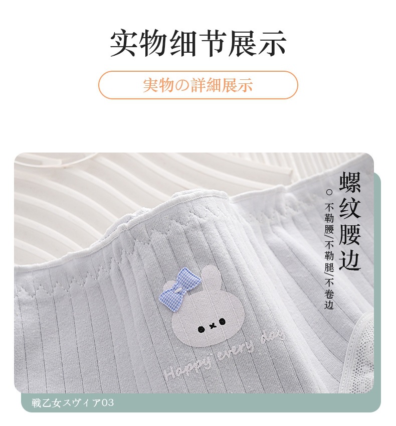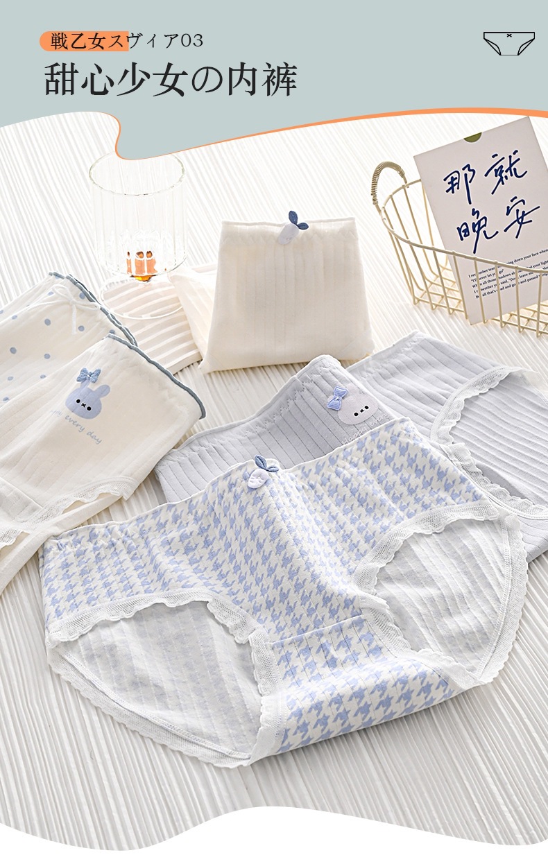 女性用下着、ガーリースタイル、甘いミッドウエスト、かわいいウサギ、和風、シンプルな水玉模様、快適で通気性のある女性用ブリーフ