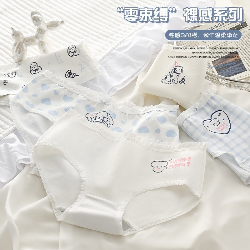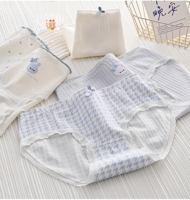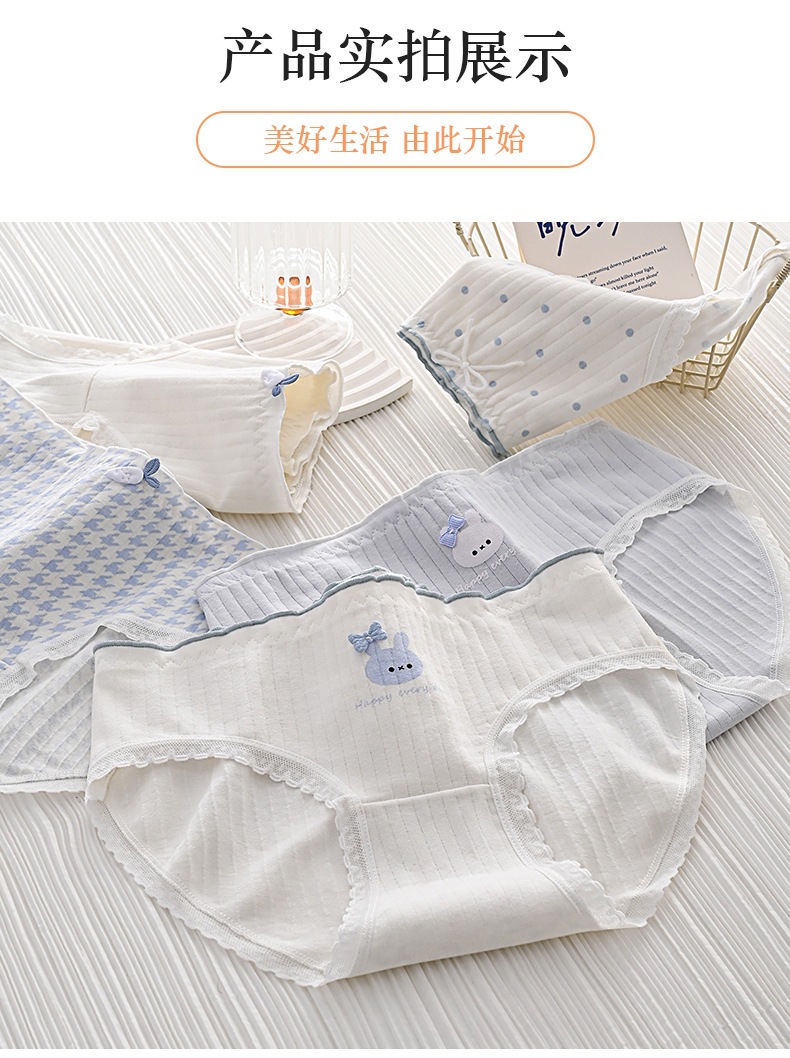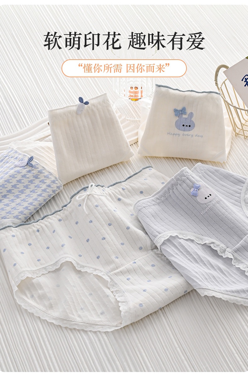 女性用下着、ガーリースタイル、甘いミッドウエスト、かわいいウサギ、和風、シンプルな水玉模様、快適で通気性のある女性用ブリーフ