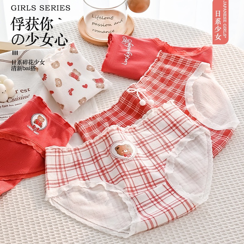 可爱幸运熊中腰少女红色喜庆本命年内裤女士亲肤透气舒适三角裤