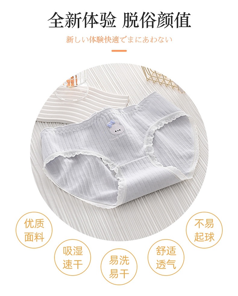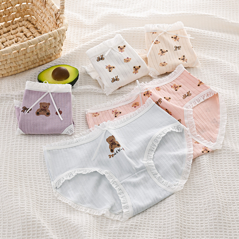 日本系純欲風かわいいプリント熊レース学生下着女子中腰弾力通気三角パンツ女子