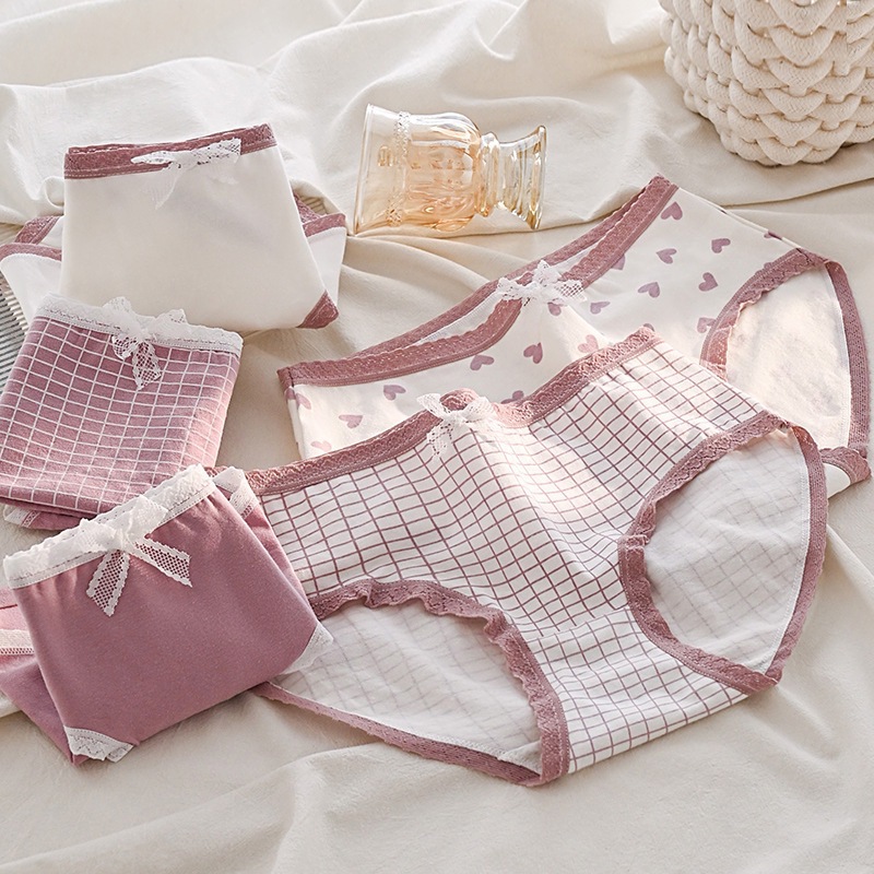 香芋紫爱心学生甜美少女内裤女日系蝴蝶结舒适透气中腰女士三角裤