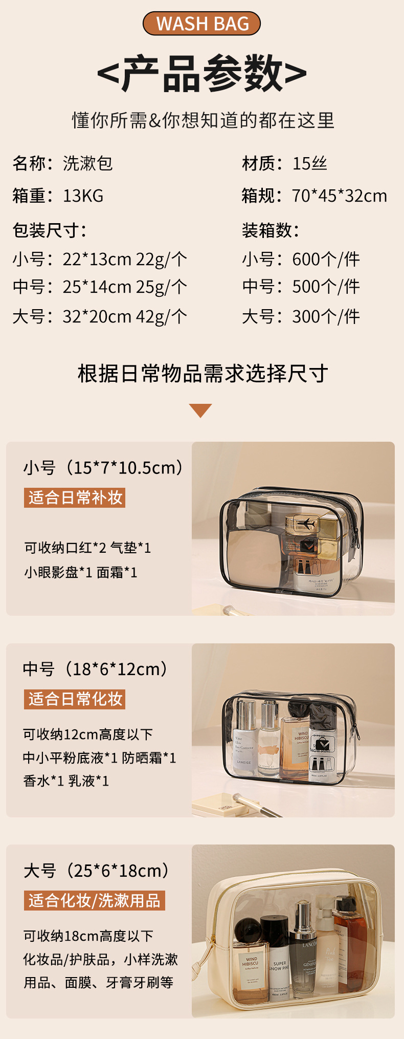 收纳透明pvc化妆包多功能旅行收纳包加厚化妆品拉链袋防水洗簌包