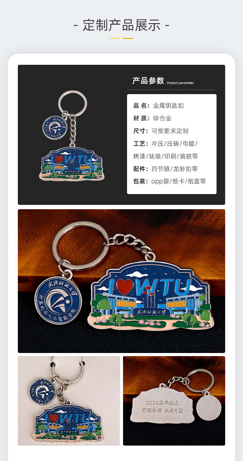 金属の漆のキーホルダーは大学の創立記念のかばんのペンダントのキーホルダーの観光地区の文創の贈り物を注文して注文します。