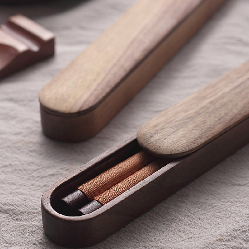 ホット販売箸パーソナルシングルポータブルボックス無垢材旅行箸学生食器ポータブル箸とスプーン 3 点セット