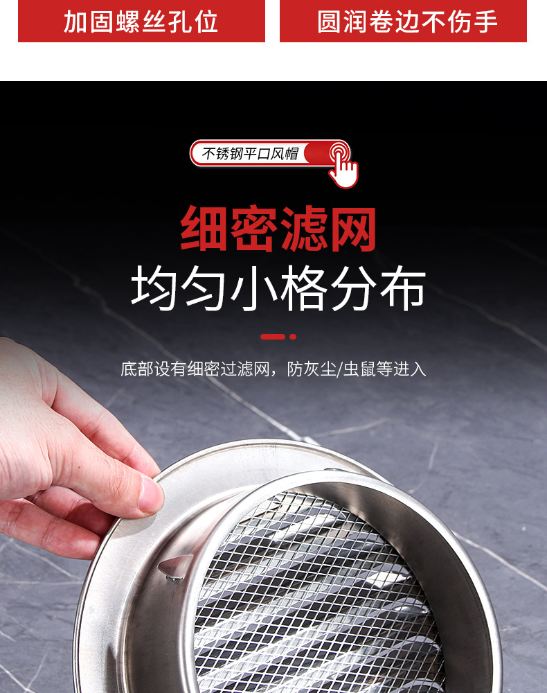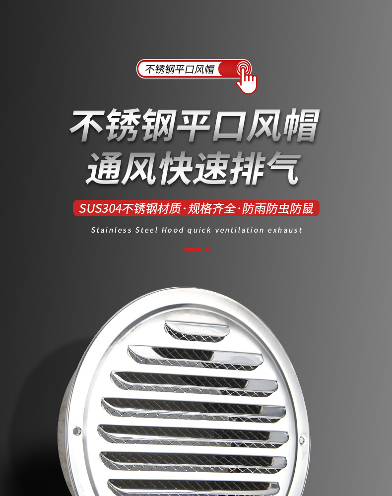 304不锈钢平头风帽201外墙通风防蚊虫防鼠油烟机排气口圆形罩风管