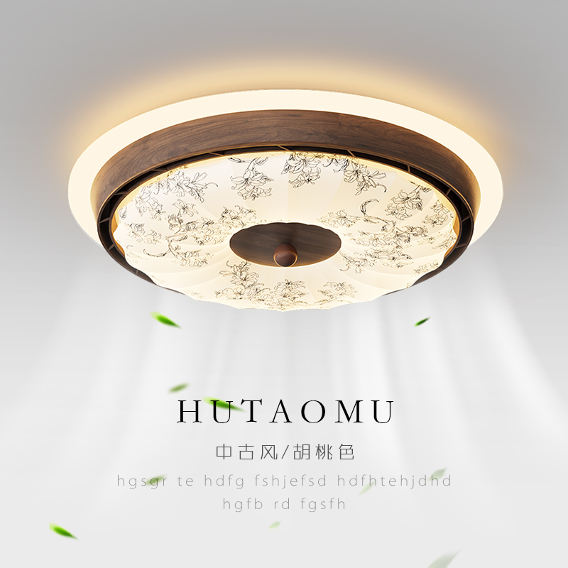 宋氏美学无叶风扇灯极简胡桃木色卧室灯中古风护眼静音房间吸顶灯