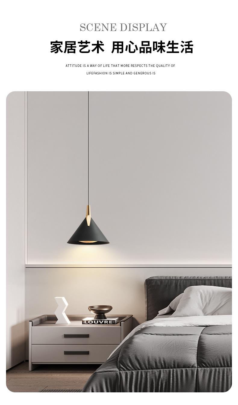 意式极简卧室吊灯床头小吊灯创意现代轻奢设计师玄关吧台吊线灯