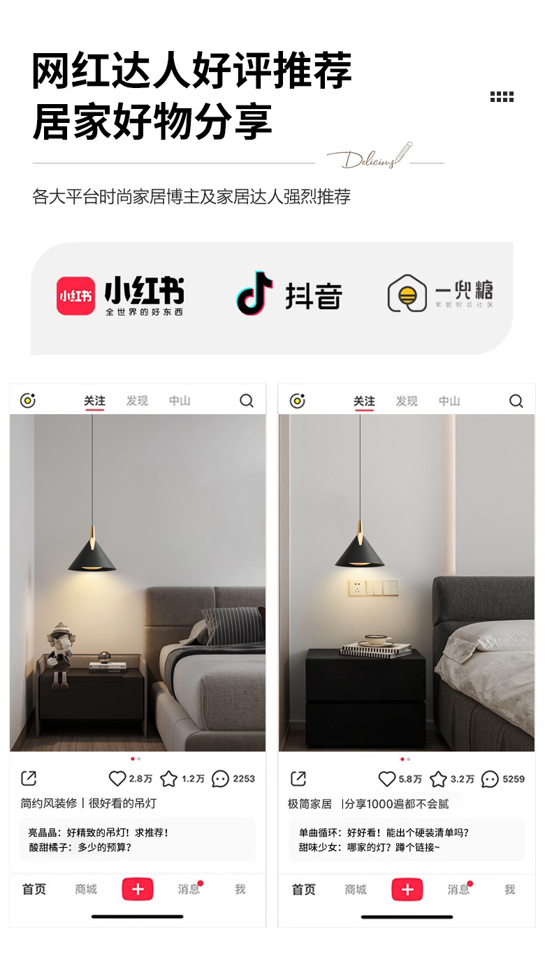 轻奢卧室床头吊灯现代简约创意设计感网红新款餐厅吧台饭厅小吊灯