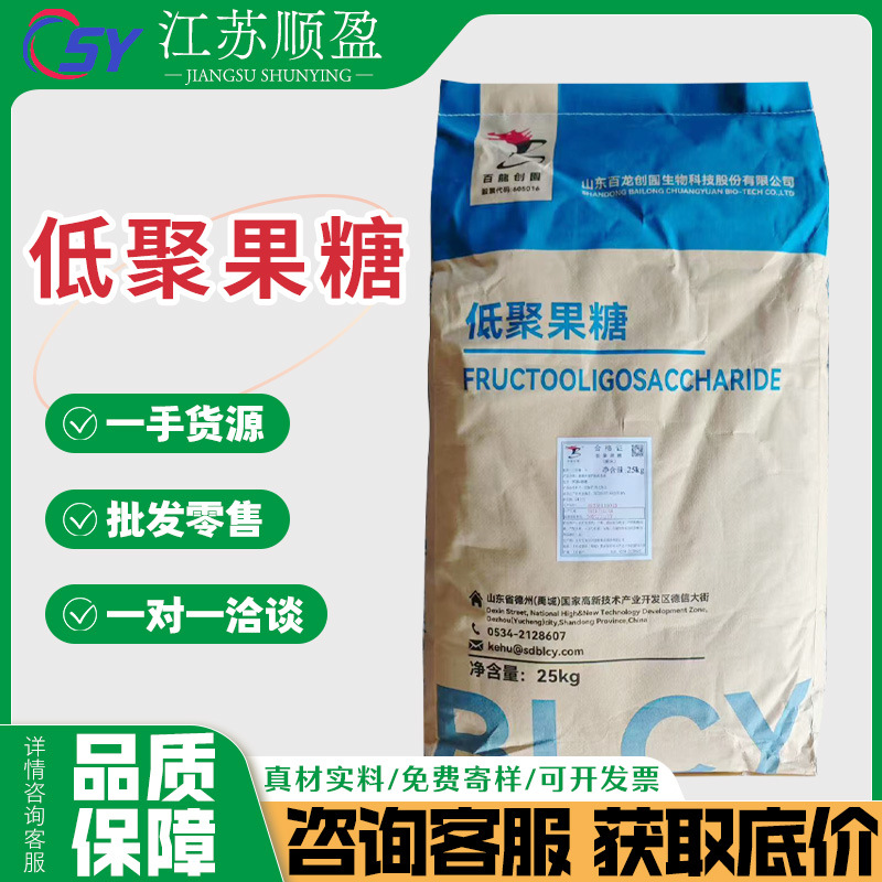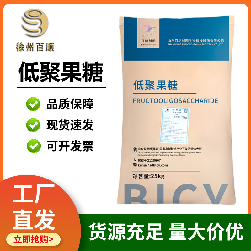 现货批发百龙创园食品级25kg袋装FOS95含量益生元粉末 低聚果糖
