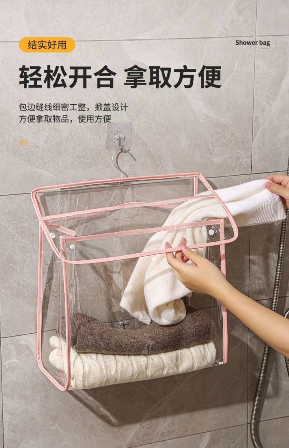 透明防水浴室收纳挂袋卫生间洗澡衣物收纳袋大容量衣服手机置物袋