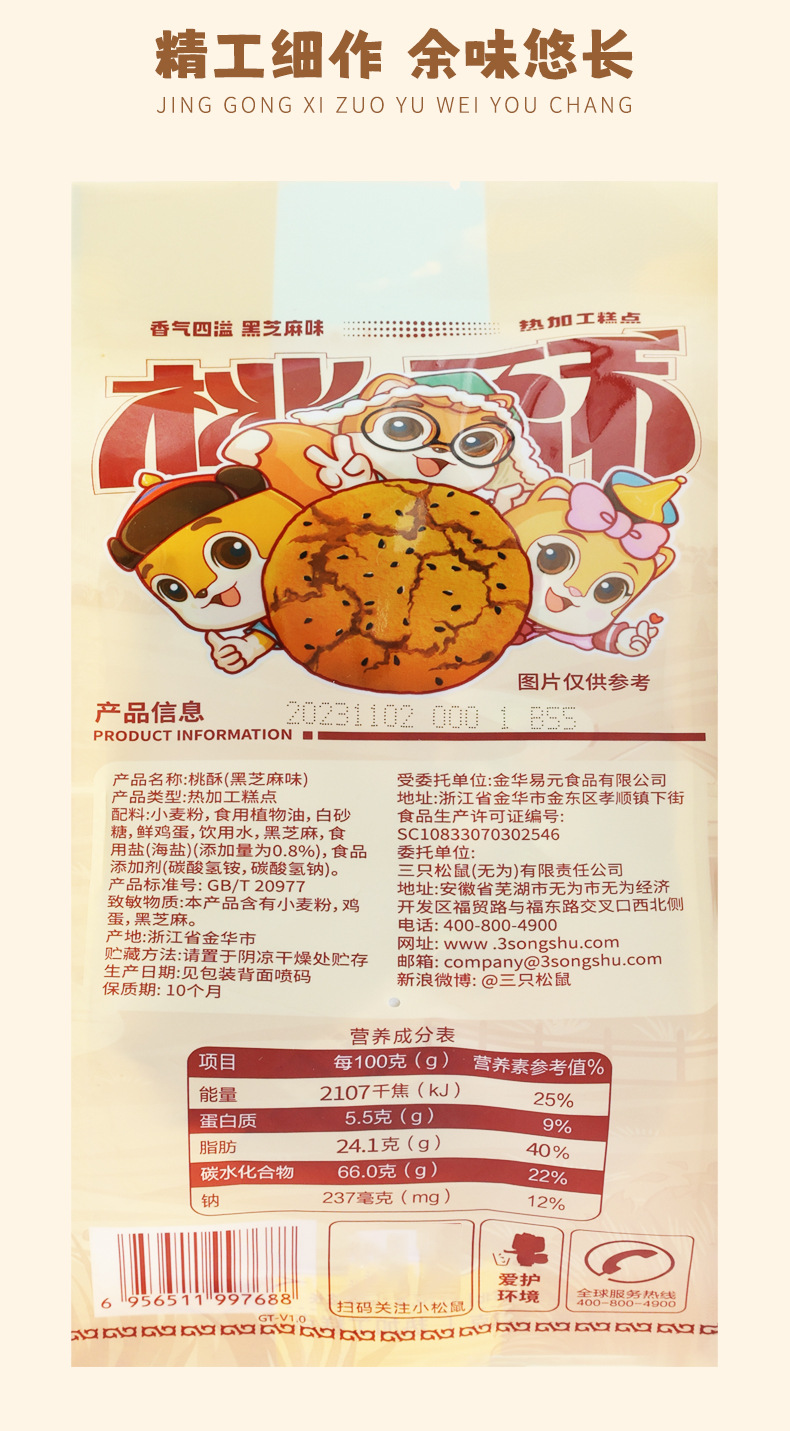 批发三只松鼠芝麻味桃酥200g新鲜独立包装即食早餐小吃零食包邮