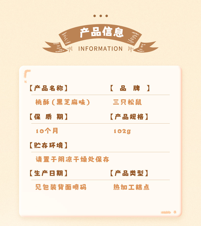 批发三只松鼠芝麻味桃酥102g新鲜独立包装即食早餐小吃零食包邮