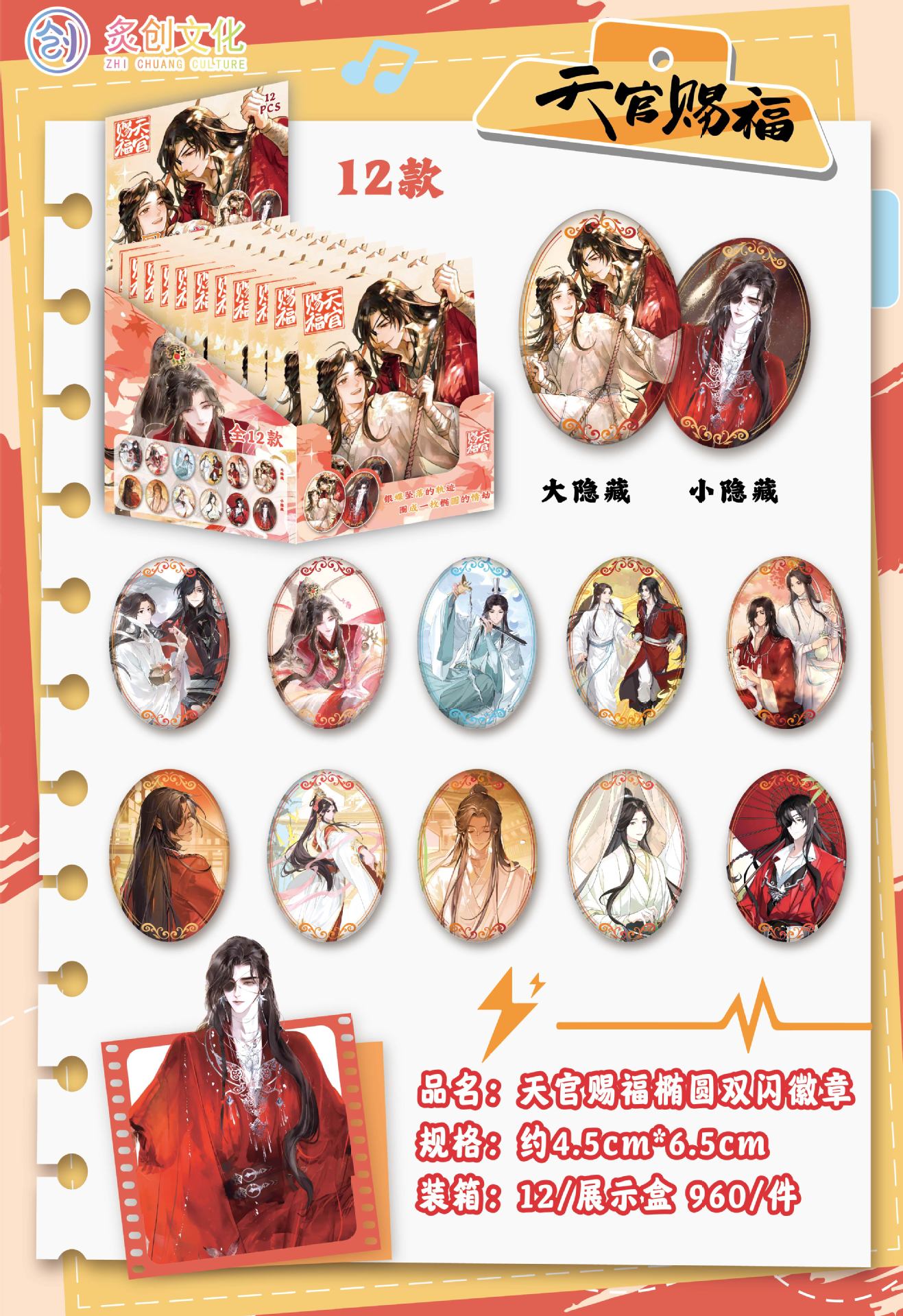 动漫游戏撕拉吧唧盲盒徽章第二弹动漫75MM双闪盲抽吧唧徽章胸针