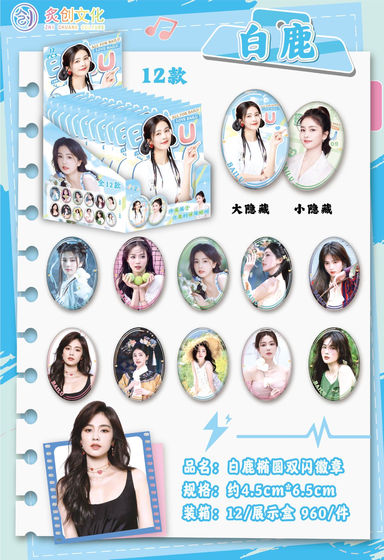 明星爱豆周边徽章盲抽盲盒fufu毛绒吧唧75MM吧唧潮玩白鹿鞠婧祎2