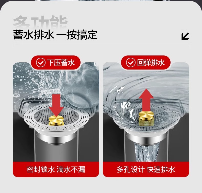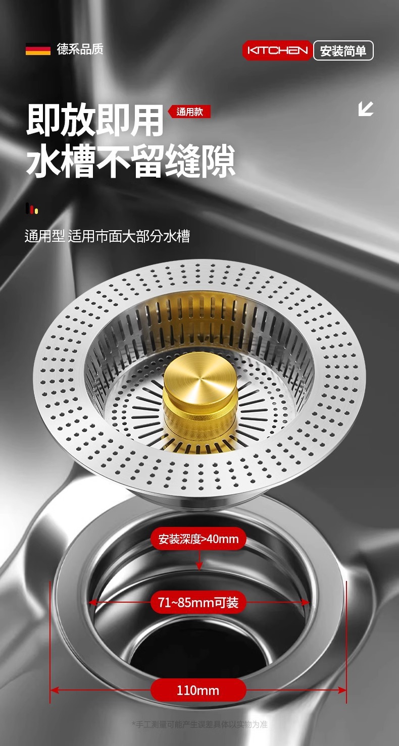 厨房不锈钢水槽过滤网洗菜盆漏水塞洗碗池通用款水槽弹跳芯下水器