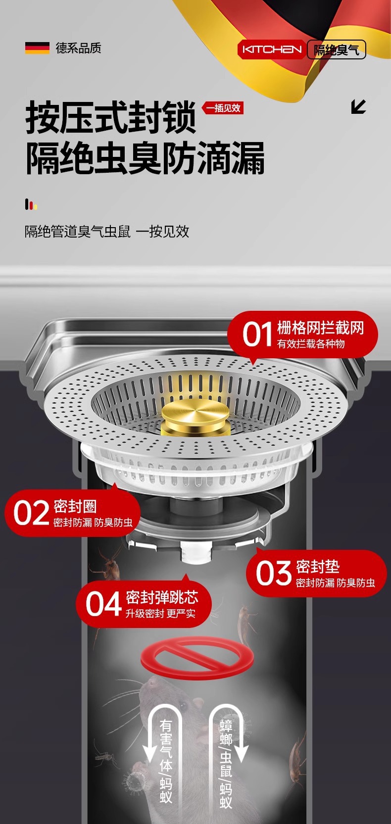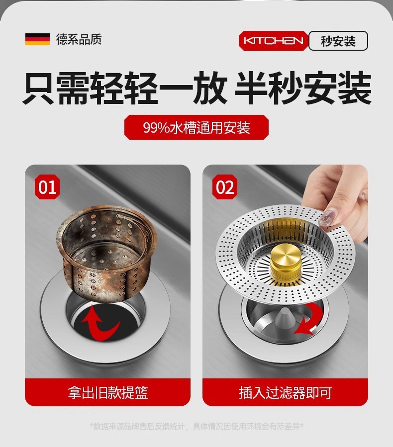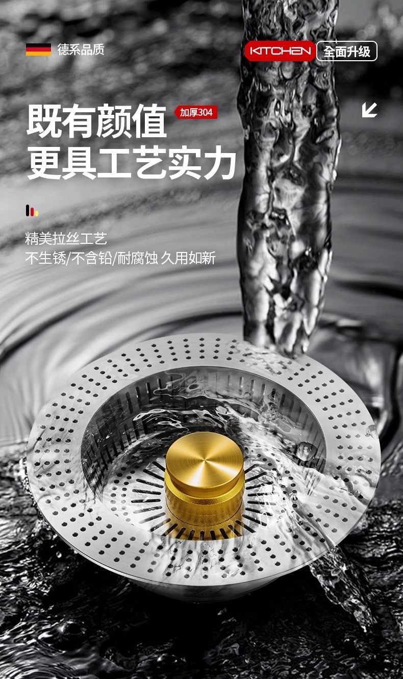 厨房水槽漏塞弹跳过滤器洗碗池洗菜盆漏水塞下水防臭神器水槽漏斗
