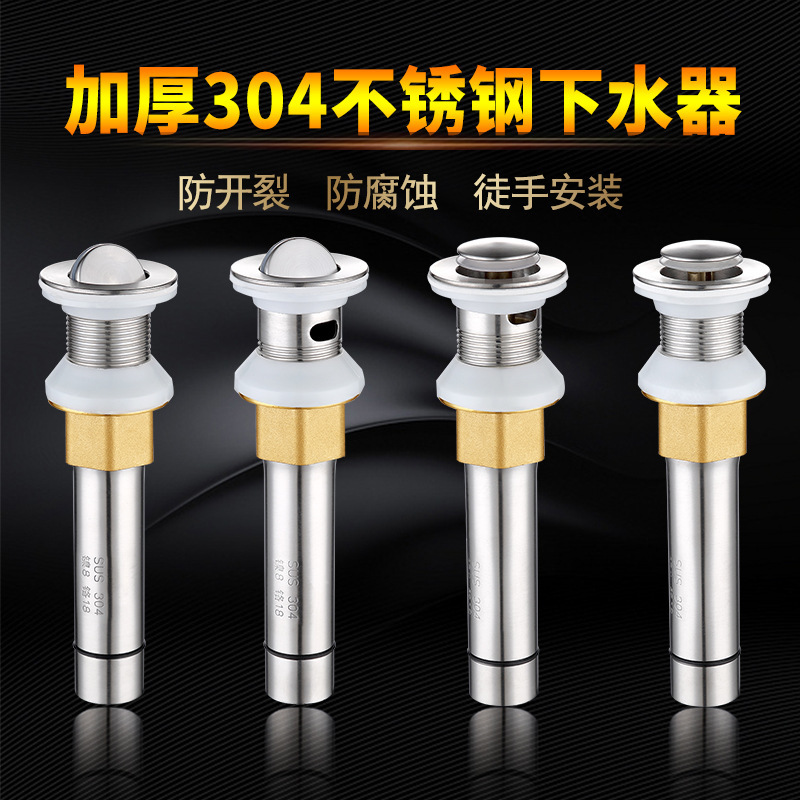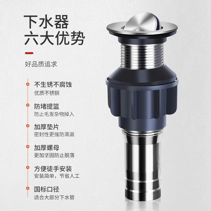 面盆洗手盆通用弹跳芯304不锈钢防臭堵孔塞洗脸盆按压式下水器过