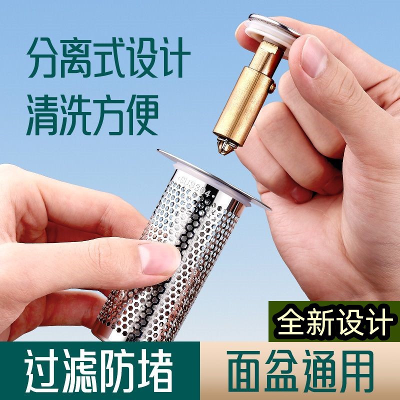 洗手盆脸池通用弹跳芯漏水塞面盆下水器按压式防臭防堵防虫过滤网