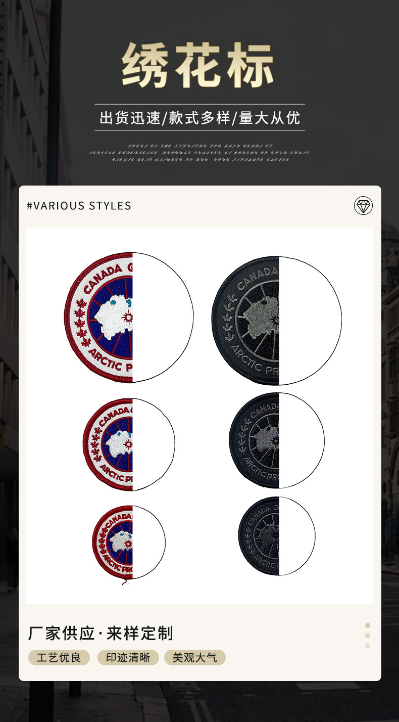 刺繍ロゴマップグースストーンかわいいボタンPホームダウンジャケットロゴショルダーロゴカスタム靴と帽子布ロゴメーカー卸売